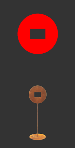 >nómos - Vom Gesetz losgekauft - I< Copyright 1995 Peter Hauf --- >nómos - Vom Gesetz losgekauft - II< Stahl, lasergeschnitten, geschmiedet, patiniert; H=1625mm 2006 |