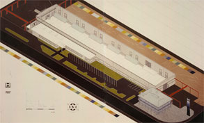 Fassaden- und Aussengestaltung für einen Industriebetrieb; 1988. Mit der weltweit ersten "Pylon"-Saeule (H = 14,77m) -siehe dazu auch naechste Seite (Tourlink)- |